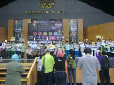 Saat final kemarin yang dimulai sekitar pukul 14.00, ketiga tim yang masuk final berada di panggung utama dan ditonton para pendukung dan peserta lomba lainnya. Materi yang dlombakan tentang teori-teori fisika dalam terapan seperti kapal selam, hukum-hukum fisika, satuan internasional untuk besaran pokok dan turunan, istilah-istilah fisika, trmasuk ada beberapa materi2 dasar pengetahuan SMP mampu mereka ketahui dan jawab. Terima kasih atas bimbingan rutin dari pembina lomba yaitu Pak Sumitro, Pak Gunawan, pihak kesiswaan, kurikulum serta manajemen sekolah dan orangtua (komite) atas kerja keras dan dukungannya.