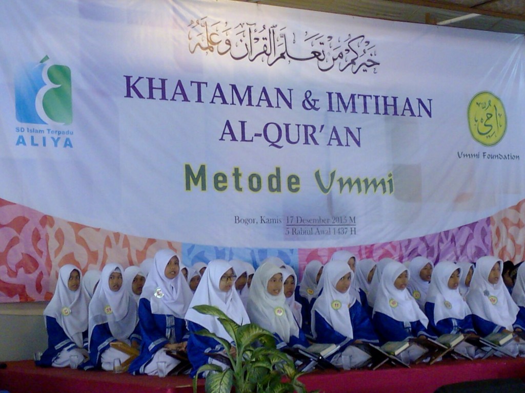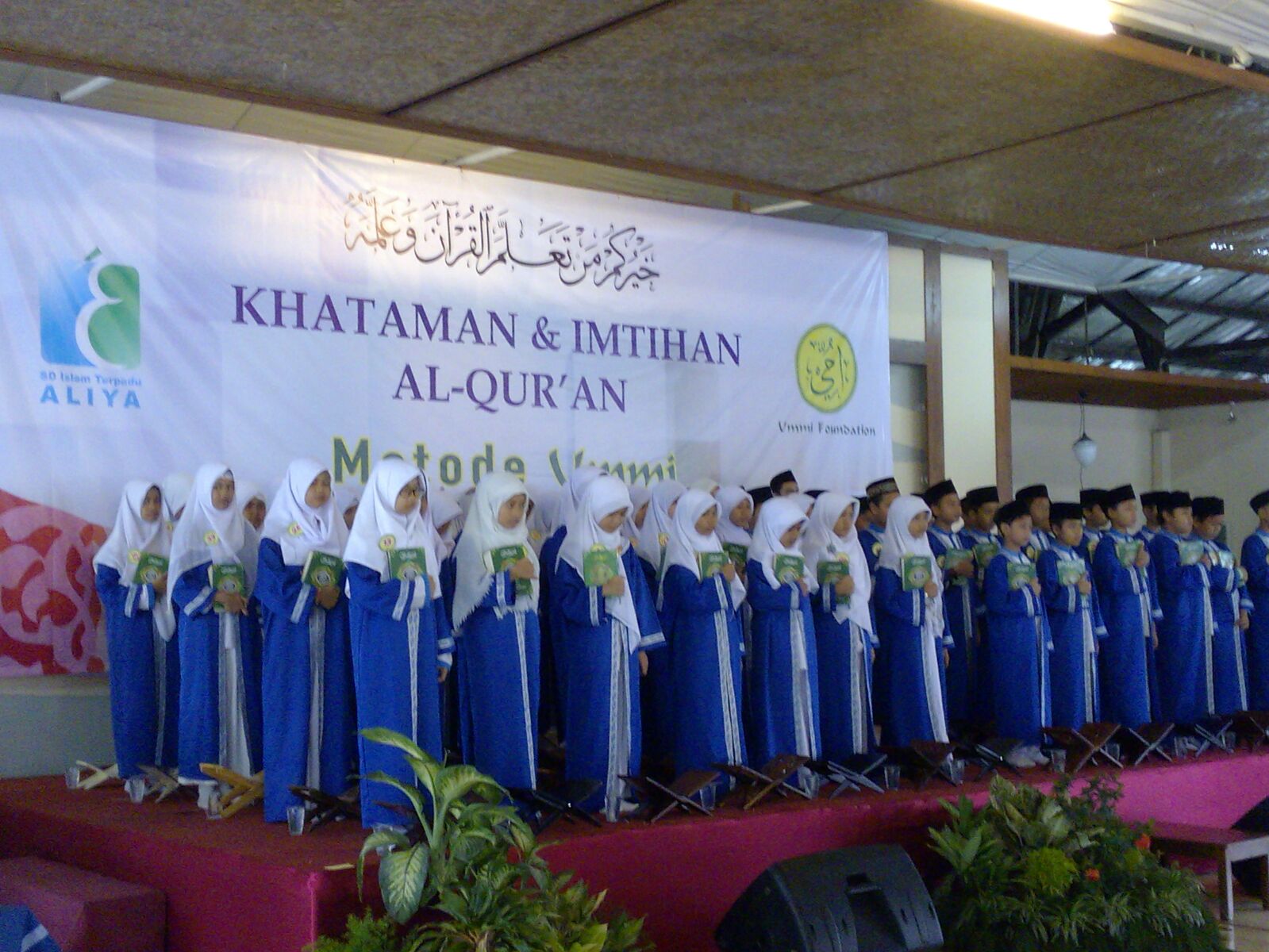 Acara ini merupakan acara perdana yang diselenggarakan oleh SDIT Aliya semenjak 7 tahun kelulusan para alumninya. Program khotaman dan imtihan adalah laporan langsung bukti hasil kegiatan belajar mengajar metode ummi dihadapan orang tua dan para tamu undangan. Pada acara ini para siswa/i peserta mengkhatamkan (menuntaskan) pembelajaraan Al Quran dengan metode Ummi dan memperlihatkan kepiawaiannya dalam menjawab pertanyaan-pertanyaan dari orang tua siswa maupun para tamu undangan yang hadir seputar materi pembelajaran Al Quran metode Ummi diantaranya, tartil (kelancaran), fashohah (kefasihan), gharib (bacaan-bacaan asing dalam Al Quran yang kadang cara membacanya berbeda dengan tulisannya), tajwid (ilmu terkait hukum-hukum bacaan di dalam Al Quran) serta hafalan juz ‘amma.