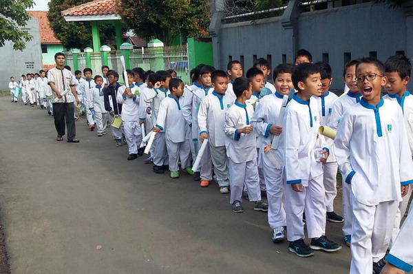 Sebelumnya… tepatnya pada tanggal 27 Mei 2016, para siswa/i melakukan pawai berkeliling sekitar sekolah sambil membagikan jadwal puasa, bendera dan kalender (masehi-hijriyah) kepada warga sekitar Bubulak yang dilalui.ย