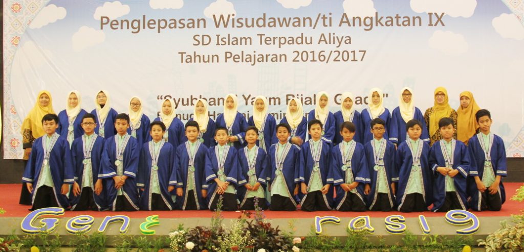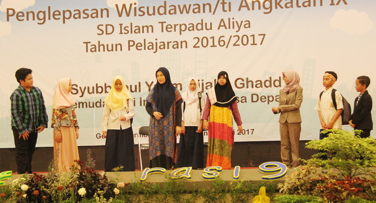 Penglepasan wisudawan/ti angkatan IX SDIT Aliya berlangsung pada hari Selasa, 23 Mei 2017 di gedung Harmony Taman Yasmin Bogor. Acara yang dimulai pukul 07.30 WIB dihadiri oleh para tamu undangan seperti pihak yayasan, kepala sekolah TK-SD dan komite SDIT Aliya.