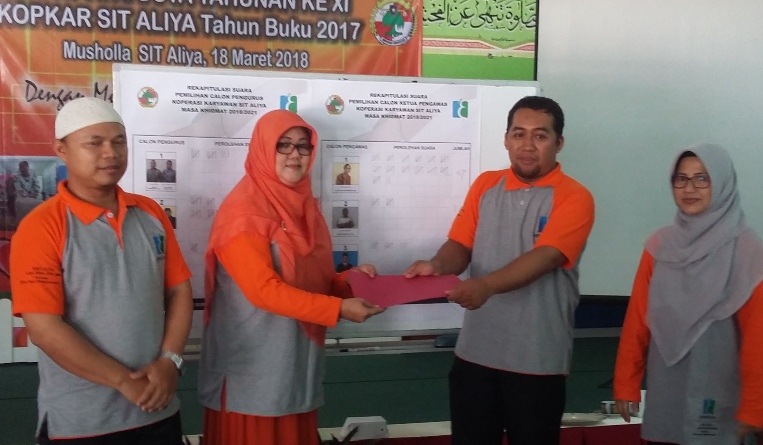 Alhamdulillah, Rapat Anggota Tahunan yang diselenggarakan pada Minggu, 18 Maret 2018 di musholla SDIT Aliya berjalan dengan lancar. Hasil rapat selain mendengarkan pertanggungjawaban dari pengawas dan pengurus periode 2015/2018 mengenai perkembangan perjalanan koperasi karyawan SIT Aliya, juga serah terima jabatan kepada pengawas dan pengurus terpilih periode 2018/2021 kedepan, dengan susunan sebagai berikut: