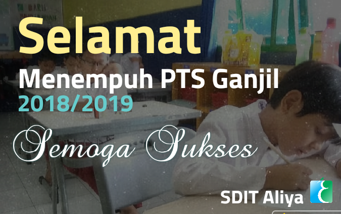 SDIT Aliya melaksanakan Penilaian Tengah Semester (PTS) Semester Ganjil Tahun Pelajaran 2018/2019 mulai hari Senin, 24 September 2018 s.d Rabu, 26 September 2018 (khusus kelas 1, 2 dan 3) dan Kamis, 27 September 2018 (kelas 3 s.d 6). Dengan jadwal sebagai berikut: