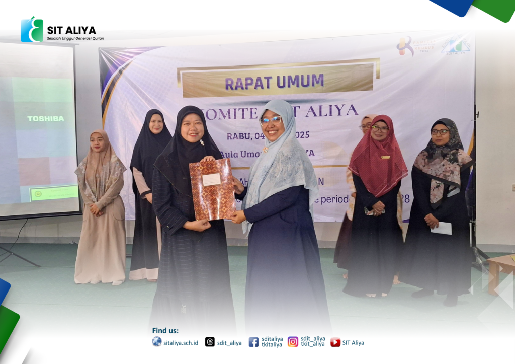 Pada Rabu (04/06/25) lalu, Komite SDIT Aliya menyelenggarakan Rapat Umum dalam rangka serah terima jabatan komite periode 2022-2025 kepada komite periode 2025-2028. Kegiatan dihadiri oleh Yayasan Himma ‘Aliya, Direktur SIT Aliya, Kepala Sekolah SDIT dan TKIT Aliya, Ketua komite 2022-2025 dan jajarannya, serta orang tua siswa. Setelah sebelumnya dilaksanakan pemilihan ketua komite yang prosesnya dimulai pada bulan Februari dengan panitia khusus yang telah dibentuk yang diketuai oleh Ibu Liza Nur Aziza, Ibu Prita F. sebagai sekretaris, Ibu Siti Aisyah sebagai bendahara, Ibu Qisti Amalia sebagai humas, dan Ibu Wipah Wajipah sebagai anggota. Proses awal pada pemilihan ketua komite ini adalah dilakukan sosialisasi kegiatan (16/02/25) baik secara lisan atau tertulis, setelah itu dilaksanakan pendaftaran bakal calon yang dilaksanakan selama 5 hari (17-12/02/25) secara online. Tahap ketiga adalah pendataan berupa penghitungan suara dan tahap konfirmasi pencalonan (22-28/02/25). Tahap selanjutnya administrasi untuk bakal calon yang menyatakan siap dan bersedia.